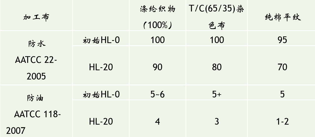 2.  稳定性 — 加工效果具有优良的耐久性,水洗后自然晾干后能够重新恢复良好的防水性。