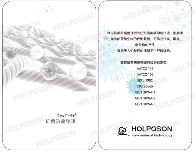 抗菌防臭整理剂HOLPOSON®CAPTAIN A-C是一种有机胍类高分子抗菌整理剂。适用于如棉、黏胶、涤纶、尼龙等天然、合成及其混纺织物。主要应用在服装、家纺、墙布、地毯、医用防护无纺布等产品.
