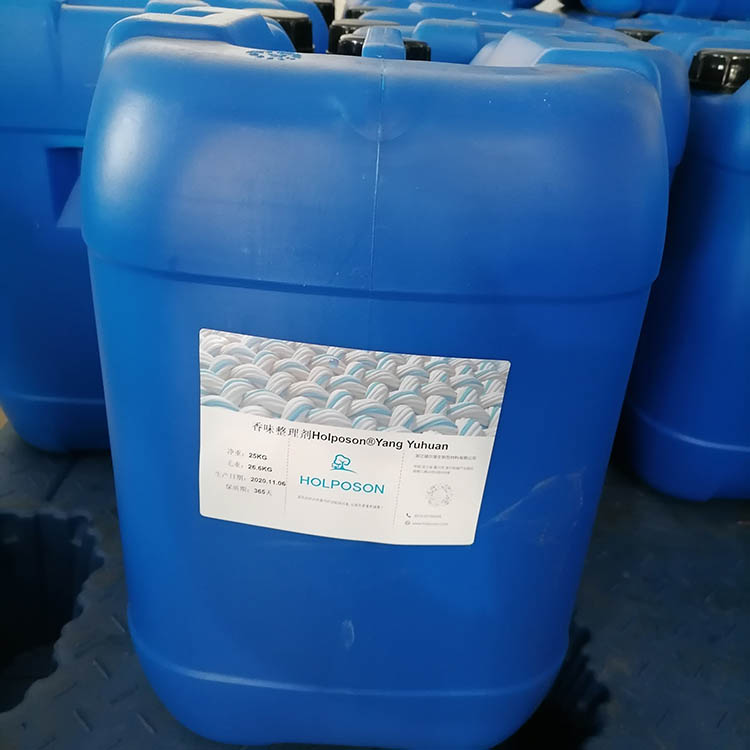 HOLPOSON® Yang Yuhuan 是加拿大归国留学博士与东华大学博士团队共同开发的高分子络合持久留香整理剂,产品是将绿茶,芦荟,薰衣草,玫瑰,茉莉,紫丁香,薄荷,艾草, 青苹、柠檬、草莓等香味的精油包覆在聚氨酯多孔微囊中制成的纺织品后整理用香味整理剂。微胶囊包裹的香味整理剂处理的纺织品面料纤维可保持长久的留香时间,耐水洗可达10次以上。适用于:家纺、服装、车内饰、地毯、袜子、内衣、沙发面料等。
