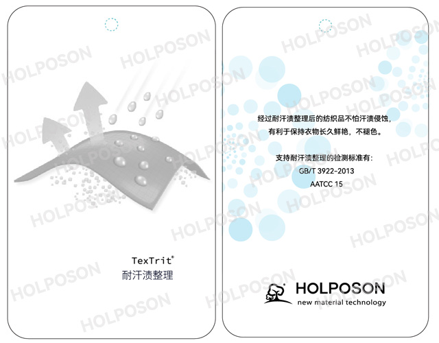 HOLPOSON® Color Keep-Sweat 是为了除去涤纶或涤氨面料上不稳定的分散染料而开发的分散染料色牢度提升剂。用分散染料染涤纶/氨纶针•机织物时,氨纶弹力丝上会吸收较多的染料造成严重的沾色。氨纶上的分散染料沾色一般很难去除,还原清洗后仍会残留在纤维中,从而造成染色牢度下降等问题。在常规的还原清洗中添加HOLPOSON® Color Keep-Sweat,能有效地去除涤氨纶上的不稳定分散染料,得到牢度优良的染色物。