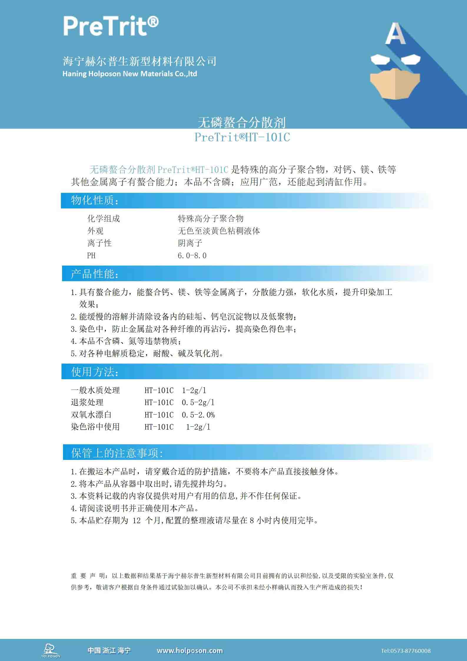 无磷螯合分散剂PreTrit®HT-101C是特殊的高分子聚合物,对钙、镁、铁等其他金属离子有较好的螯合能力;本品属于环保产品,不含磷;应用广范,还能起到清缸作用。
